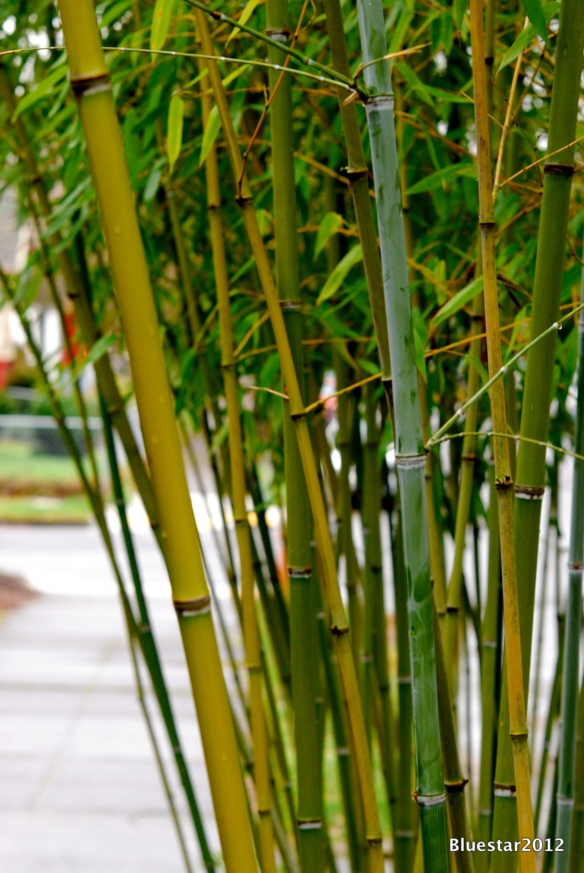 Planted on a parking strip in NE Portland. Two winters ago, during a snowstorm, this group of bamboo, loaded with ice and snow, were laying horizontal on the street. After the snow and ice melted they bounced back up as though nothing had happened.