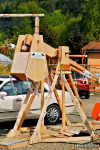 I think the people at Hunters Farm do a pumpkin toss each fall using the two trebuchet’s above. I think it would be fun to witness a pumpkin toss in person  using this medieval device. The atomic bomb of the Middle Ages. There are a few sites online devoted to sharing plans on how to build one and kits for sale.