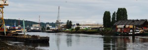 Past the old bridge the river is almost to the bay. The river is constrained all along these last few miles. Channeled, dredged, walled in. Split at the end around an island made from fill. I imagine the river patiently waiting for the time when it will be able to choose its own route across the wide flat expanse that was once tideflats. All it would take is one well-placed asteroid strike…