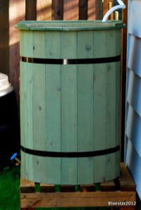 Rain barrel, moss, webbed-feet and sun screen ( for those 10 rare days of sun we experience annually) a rain barrel affixed to a downspout is becoming more common in the NW. This one was manufactured by The Rain Barrel Man of NE Portland.