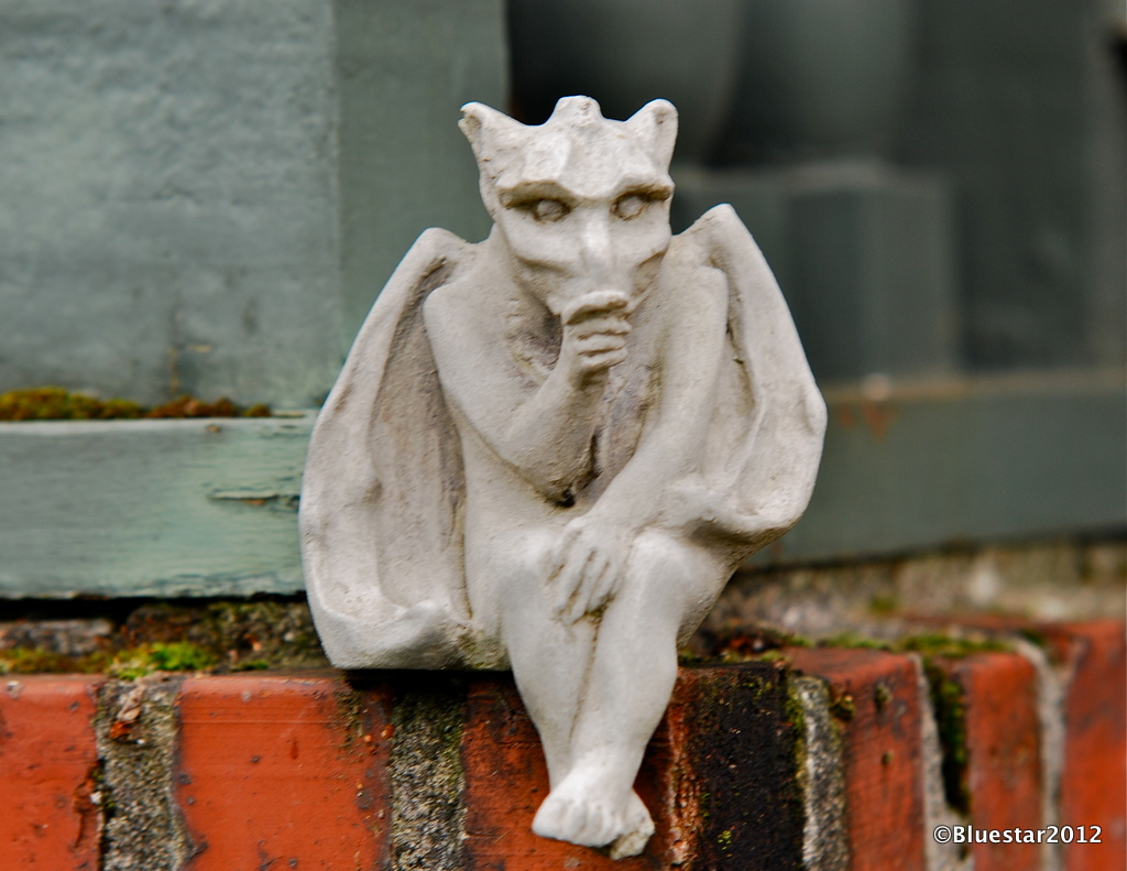 Since I’ve always been opposite (or so it seems) of the rest of the world, I like gargoyles. Not the ugly nasty ones, but I always put a few out at Halloween. Steve won’t let me keep them out the rest of the year. This guy does seem to be sucking his thumb. Maybe he’s a baby. As I understand them, they are supposed to be helpmates and ward off evil. Nice pic of the guy though, regardless of your personal feelings.