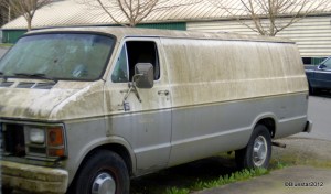 The van used to belong to the Boeing Company. Not sure how it ended up here, at the mill. The driver’s side window is gone so it doesn’t take much of an imagination to guess what the interior looks like.