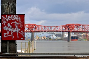 Down river, the Willamette does seem large and powerful. You can see two bridges in the background. Love all of the bridges connecting different parts of Portlandia.