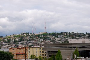 From south of Lake Union, looking at Queen Ann Hill, Seattle. This was shot from the top of the Pemco parking garage on Eastlake Ave. I only had a 55mm lens in the car to use. Not the best lens for the situation.
