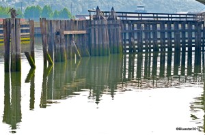 Duwamish River at 14th St. Bridge. These pilings, I believe, were put in place to guide the large ships through the narrow passage of the drawbridge. Right now construction of the new bridge is progressing. They are building the cofferdams for the new bridge using the large crane seen in a previous post.