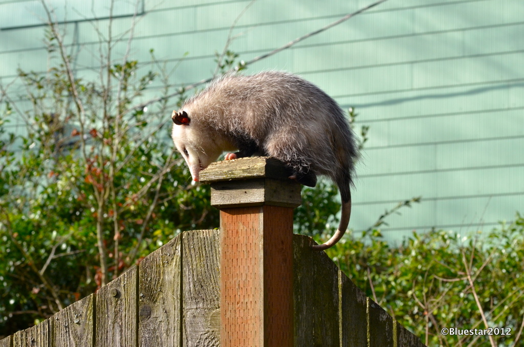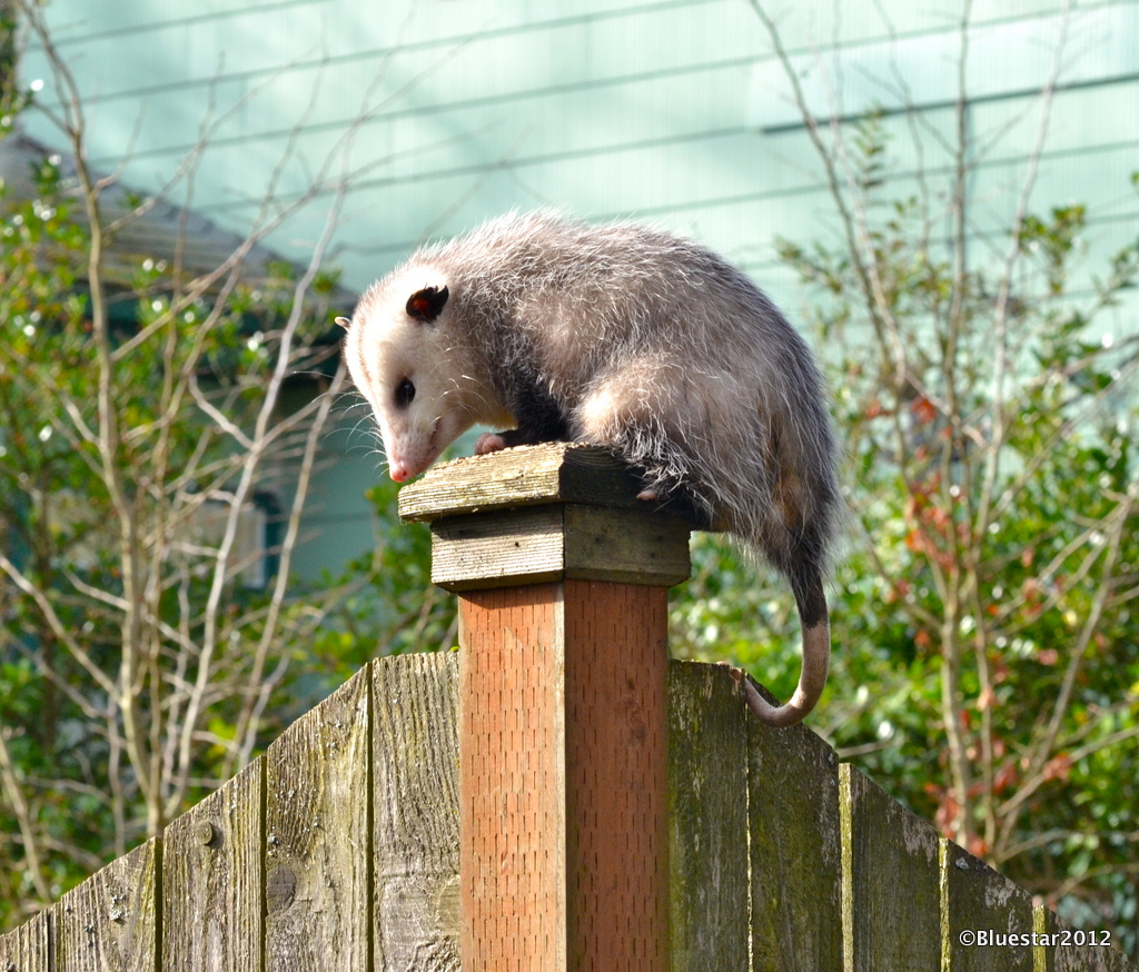 Spotted last week between Prescott and Alberta St.’s in Portland. My guess would be this possum got caught somewhere in daylight that was not good or too far from where it usually hangs out in the daylight hours. My apologies to possum-lovers, but to me they look like  big  rats.