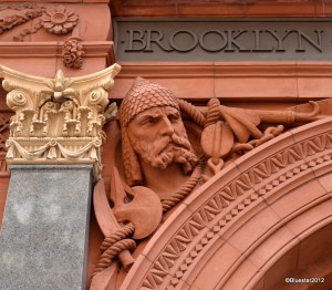 Some of the details above the entrance to the BHS, which is located in Brooklyn Heights. One of the first ‘suburbs’ of Manhattan, Brooklyn Heights is just across the East River from mid-town Manhattan. Was also the first settled area (in modern times) of Brooklyn, for same reason. Might be an early example of money fleeing the grit and grime of the city.