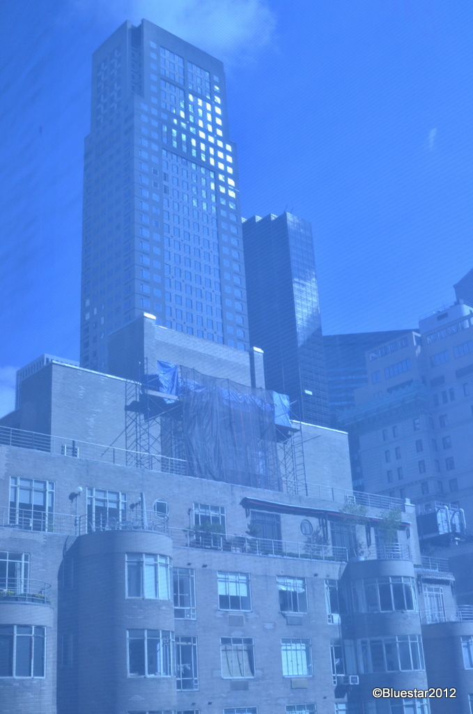 Shot in midtown Manhattan. Not just an experiment in mood, but also what caught my eye was the streaks or rays of discoloration seen diagonally through the tallest building.