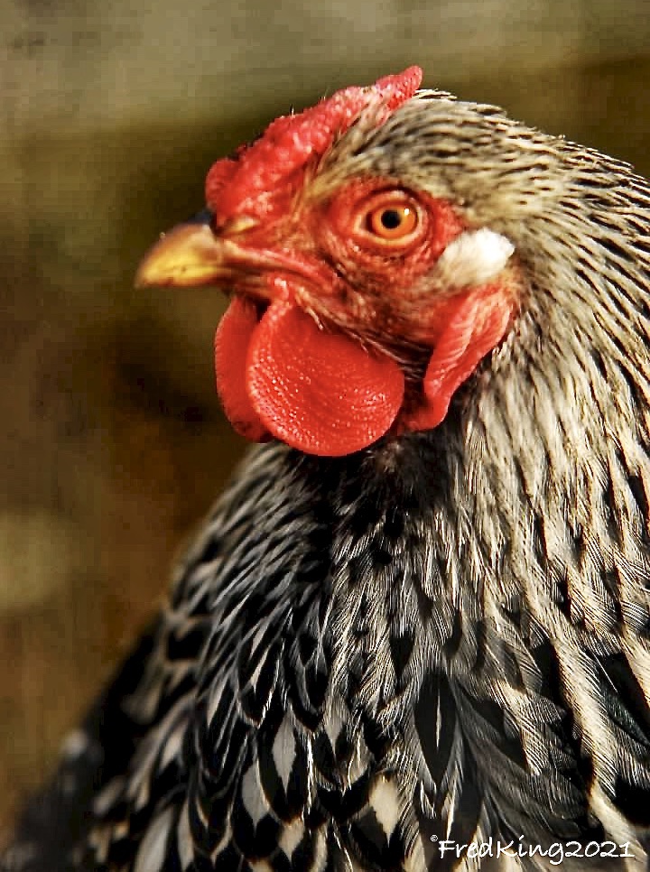 This chicken was one of four urban chickens that lived down the street from our daughter’s house in the Sabin neighborhood of Portland, Oregon. On our walks home from the school our granddaughter attended we would sometimes stop by to feed the chickens-which was usually crackers like those small fish shaped crackers ( the name escapes me). There were quite a few urban chicken coops in NE Portland. One house, some sort of a commune, even had goats and sheep.