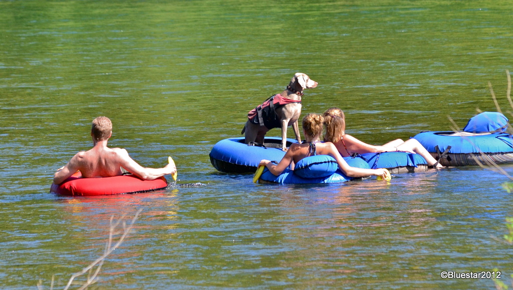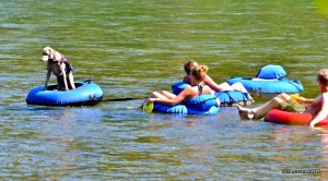 Tubing down the Wenatchee River at Leavenworth, Wa. A refreshing activity on a 90 degree day, even for a dog.