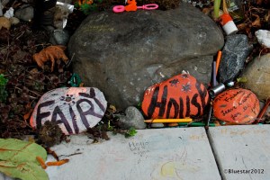 I’m not sure why people put these gargoyle-like items in and around their gardens. This one seems more benevolent than most, but still it kind of creeps me out. I always feel a sense of negativity when I look at one. Maybe this is a thumb-sucking gargoyle?