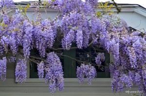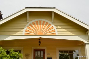 Located on Mississippi St., in NE Portland. The front gate is padlocked and bushes, as you can see, cover the view of most of the front of the house now. I’m not sure if tours are conducted or if the house is just closed up. It is on the National Historic Registry.