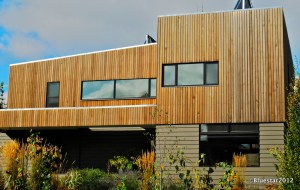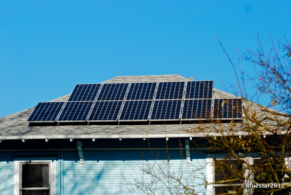 In a neighborhood of mostly bungalos, four square and other types of craftsmen-like houses is this new construction, complete with an array of solar panels.