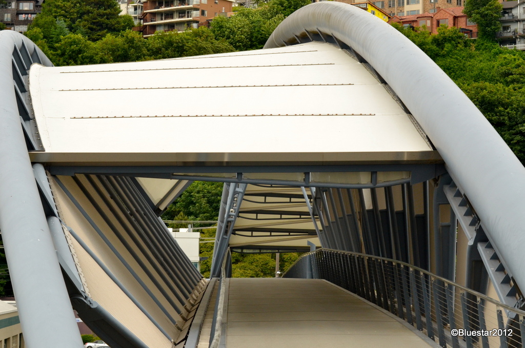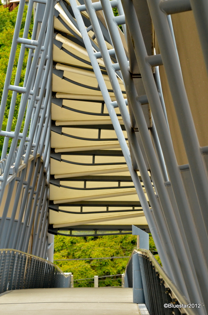The view of the pedestrian bridge is from inside an elevator that had green tinted glass. The second image caught my attention as the cloud formation seemed ominous.