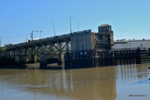 Rusty train bridge just west of the locks. These old bridges are cool, with the large counterweight lift mechanism.