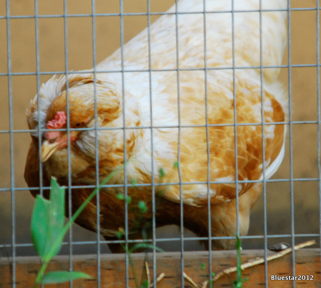 Most urban chickens I have run across are quite shy. This chicken, along with his coop-mate, saw me walking by and literally as if they were dogs, came trotting up to the fence and were not only curious, but hungry. I fed them some crackers and it was like they were ‘begging’ as dogs do. They hung around the fence till I ran out of crackers.
