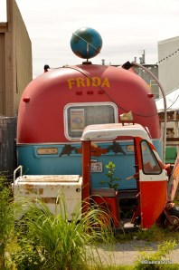Although nearly faded away, this is a sign on the old Vespa Club in Georgetown. The painting is supposed to show a woman ( circa 1960’s) sitting on a yellow Vespa scooter.