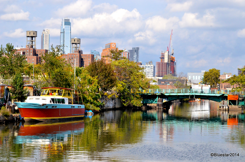 Location: Park Slope, Brooklyn. On a bright, sunny day the park lights were one, which made for an interesting glow. In the right, from the 3rd St. bridge in Gowanus Canal about three blocks from where our son and family live, is a view of the new, luxury apartments build right on the EPA Superfund site of Gowanus Canal. I’m not sure how the developer wrangled a green light to develop on this site, but since this is NYC, I would imagine some money exchanged hands and all was good. The Canal has been designated a Superfund site since 2007 and only the week I was visiting were they starting the first pilot debris removal from one section of the canal called “the turnaround ” adjacent to the Whole Foods store that just went in a few years ago ( that’s another story). What may look like an idyllic location in this image is actually a very toxic ( heavy metals, tar oil, etc) waterway which, on heavy rain days, raw, untreated sewage flows into. Then there is the smell, something you would never forget. On hot days the canal becomes this stagnant, heated cesspool that has an odor you would never forget. On this day it was pretty mild, but still can be shocking to non-residents walking through. I have read that the starting rents on the one bedroom apartments is $4500.00 per month! One more dynamic to consider: during Superstorm Sandy the area flooded. The water came up over the banks of the canal and ran uphill about one block, which would put the first floor apartments at risk in the event of another big storm. You can see some videos of Gowanus and the storm on YouTube. Very crazy.