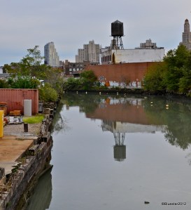 Downtown Brooklyn in the distance in the lower image, which has the canal in the foreground. All of this area flooded during Sandy.