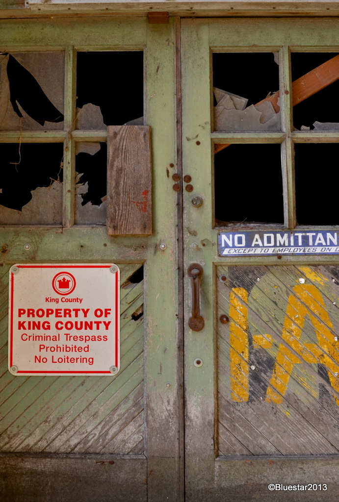 More vegetation in odd places,, broken windows and signage. Apparently King County Solid Waste Management Division is the current owner. On my to-do list is to find a contact inside the organization to field some of my questions.