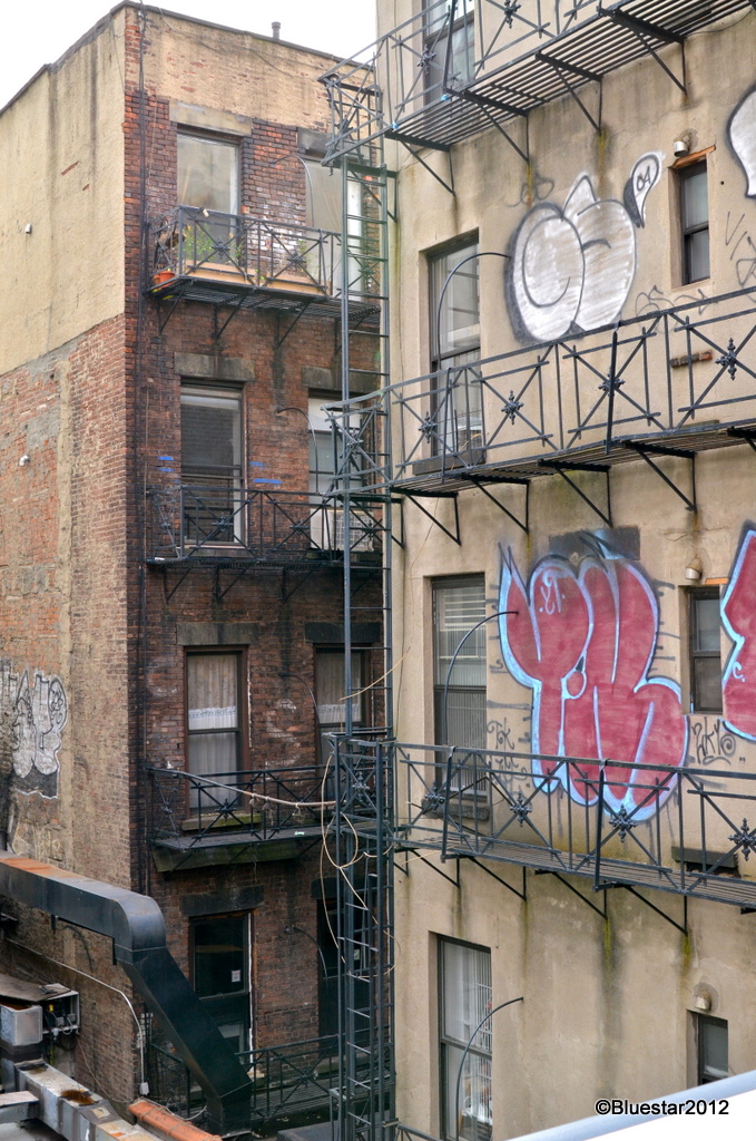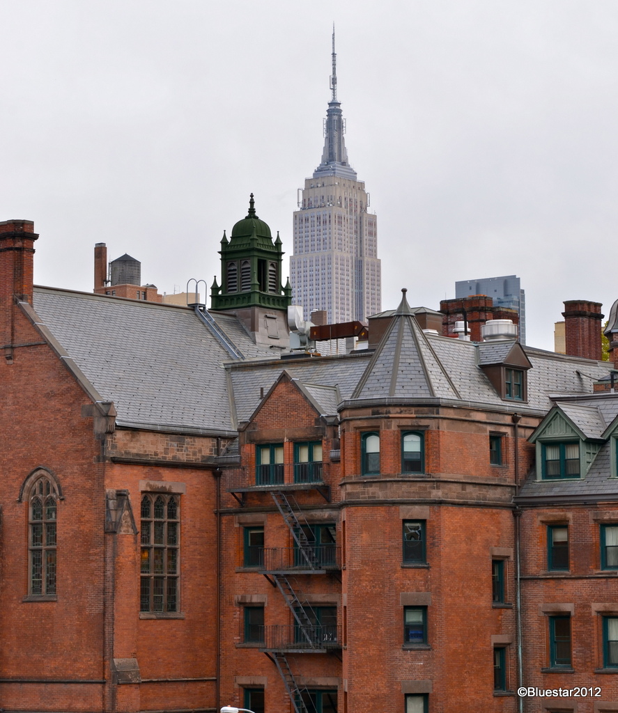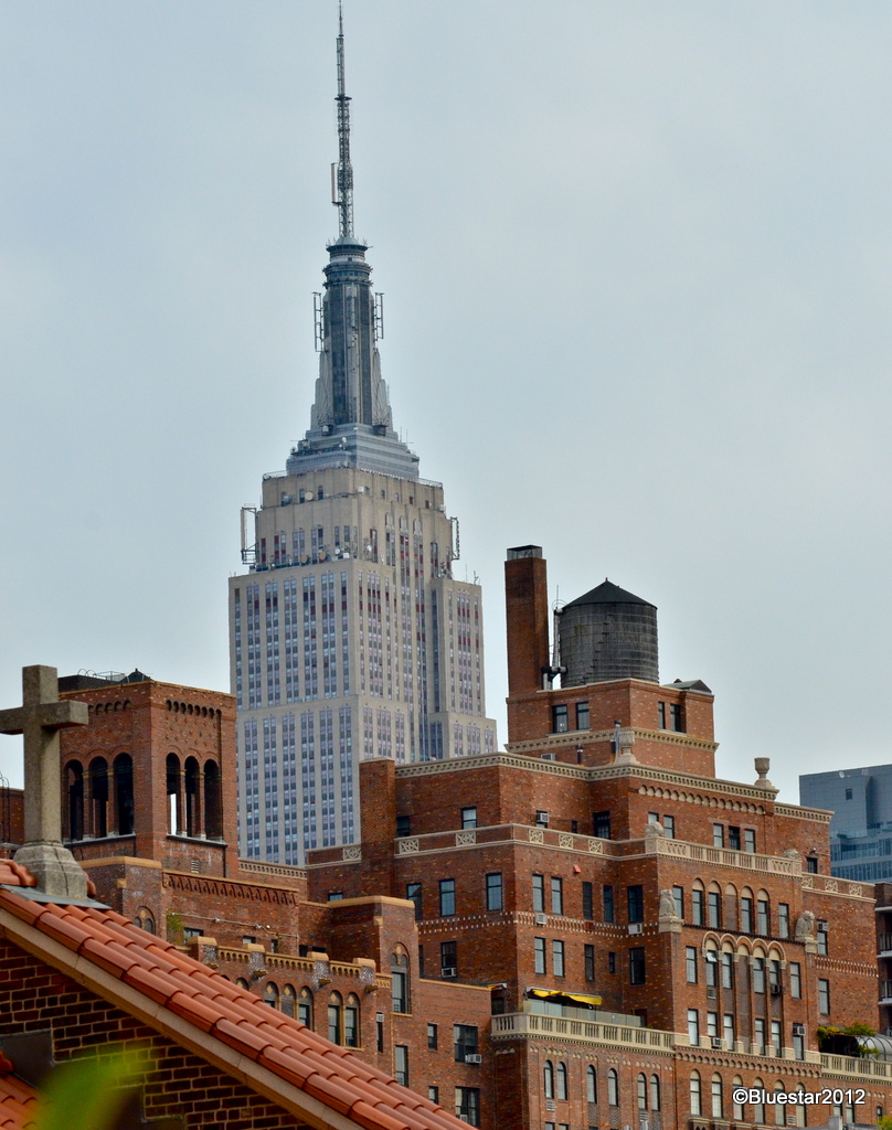 Contrasting the classical brick architecture with the Empire State Building in the background. I even snuck in a cross and an old, dirty water tank.