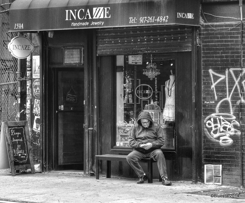 On the LES: what I was shooting when Kenny Banks jumped into view. Some of the music fans going between Piano’s and The Cake Factory, off Ludlow St. There were about five different venues within a few blocks of each other that people could watch bands perform. Until 6PM daily the shows were free.