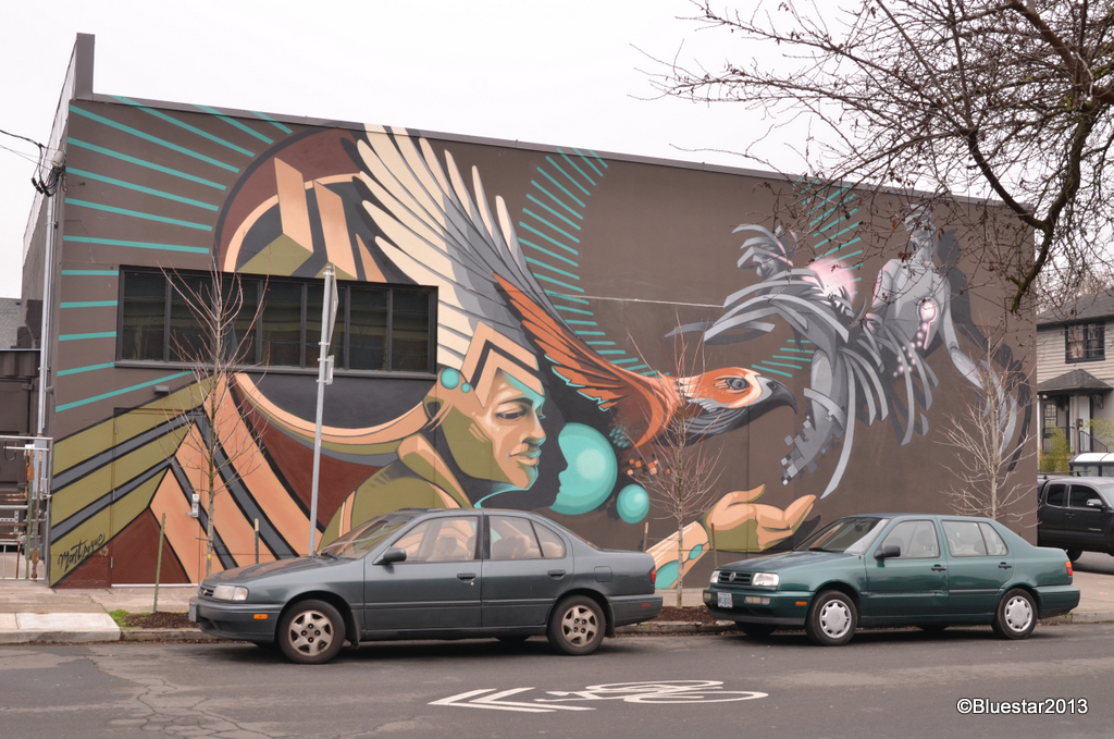 Building mural and The Albina Press on Albina St. in NE Portland, OR. One of my favorite coffee shops in Portland.