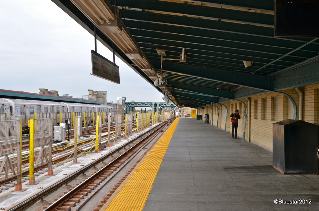 This station is the end of the F and G lines. Subway trains pull inside the large covered area and then proceed to head out in the opposite direction. The station actually faces Surf Ave. but for whatever reason, it is named Stillwell Ave. Station. I think the station got a major facelift a few years ago. Stillwell Ave. may be the street on the left ( as you look at this image) of the Station. I have entered and exited from both sides and they both work just fine, however more shops can be seen if you enter via Surf Ave. You can imagine the throngs of people heading to the beach in the summer, cascading out of the two exits. In October it is deserted, aside from a few odd travelers such as myself :-).