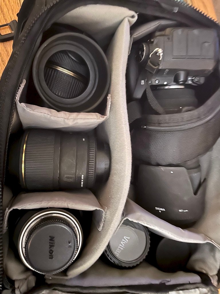 For an itemized list see the homepage of my blog. Thought it would be fun to do an aerial shot of what is currently in my camera backpack.