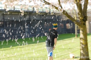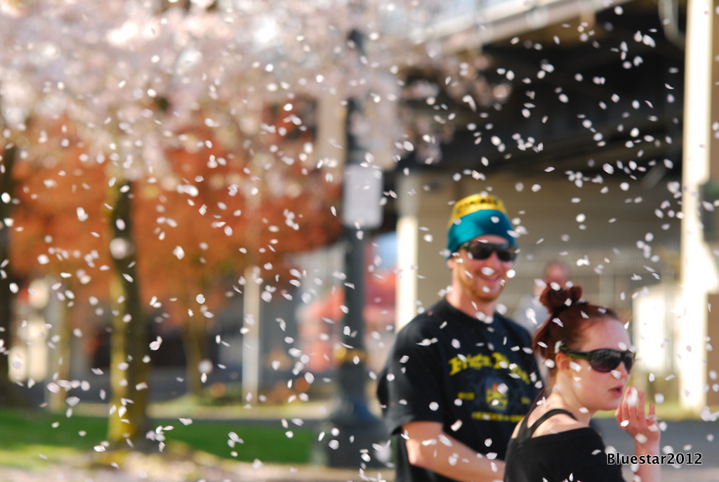 Pinkish-lavendar sky with the moon hanging about. Photo taken with an Olympus point and shoot camera 6 years ago. Note the peace symbol on the sail. I was attending a peace rally at Alki Point and this sailboat came by, to the cheers of everyone on shore.
