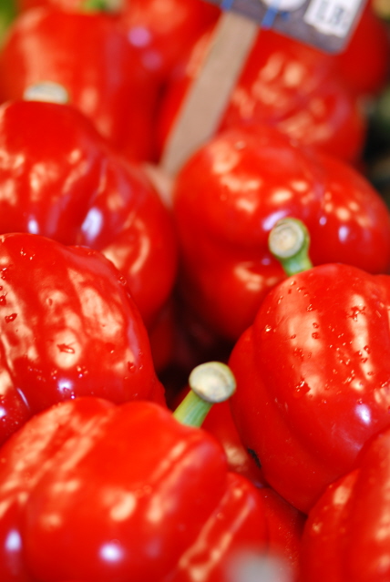 Today it is peppers and pigs. This was shot in film at the Pike Place Market. Most vendors were patient with me, but one I had to bribe one less-than-friendly young woman by purchasing some tomatoes.