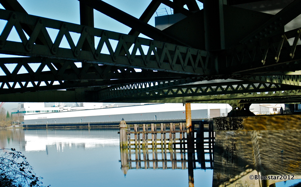 There has been a layer of fog over Seattle for days. I thought I should post something to remind me of what blue sky looks like. The Duwamish River at high tide is nearly glassy in appearance. The building reflected is a Boeing property, one of few remaining in this section of Seattle known in Boeing-speak as Plant II. Although I am retired from Boeing I have no idea just what takes place in this building. In my day there were some secure sites within Plant II, but I think most of that was in relation to work Boeing did on the stealth aircraft in the 1990’s.