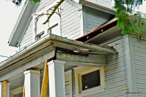 I have posted photos of this house in NE Portland, not knowing the owner and much about the history. This past week I met Mike, the owner by inheritance, of this old home. Mike has been doing home renovations in Portland for the past 3 decades. Rather than tear this house down, for somewhat sentimental reasons, Mike decided he was going to refurbish. This refurb will be a major project that will take some time. The ‘bones’ of the home are relatively good, but the roof, porches, electrical and plumbing are shot. I hope to be able to document as much of this renovation as possible. Mike knows I have a photoblog and that I have posted a couple of images of the home, pre-renovation.