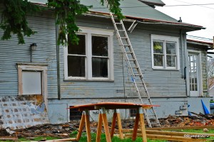 It has been a while since I posted something about Mike’s house in NE Portland. Since the last posting he has punched out some dormers upstairs, painted ( probably primer) the outside and removed the old front & back porches. I haven’t been inside the house, but my guess is that it is mostly gutted. The dormers are a good way to increase usable square footage and not really add much to the cost of renovating.