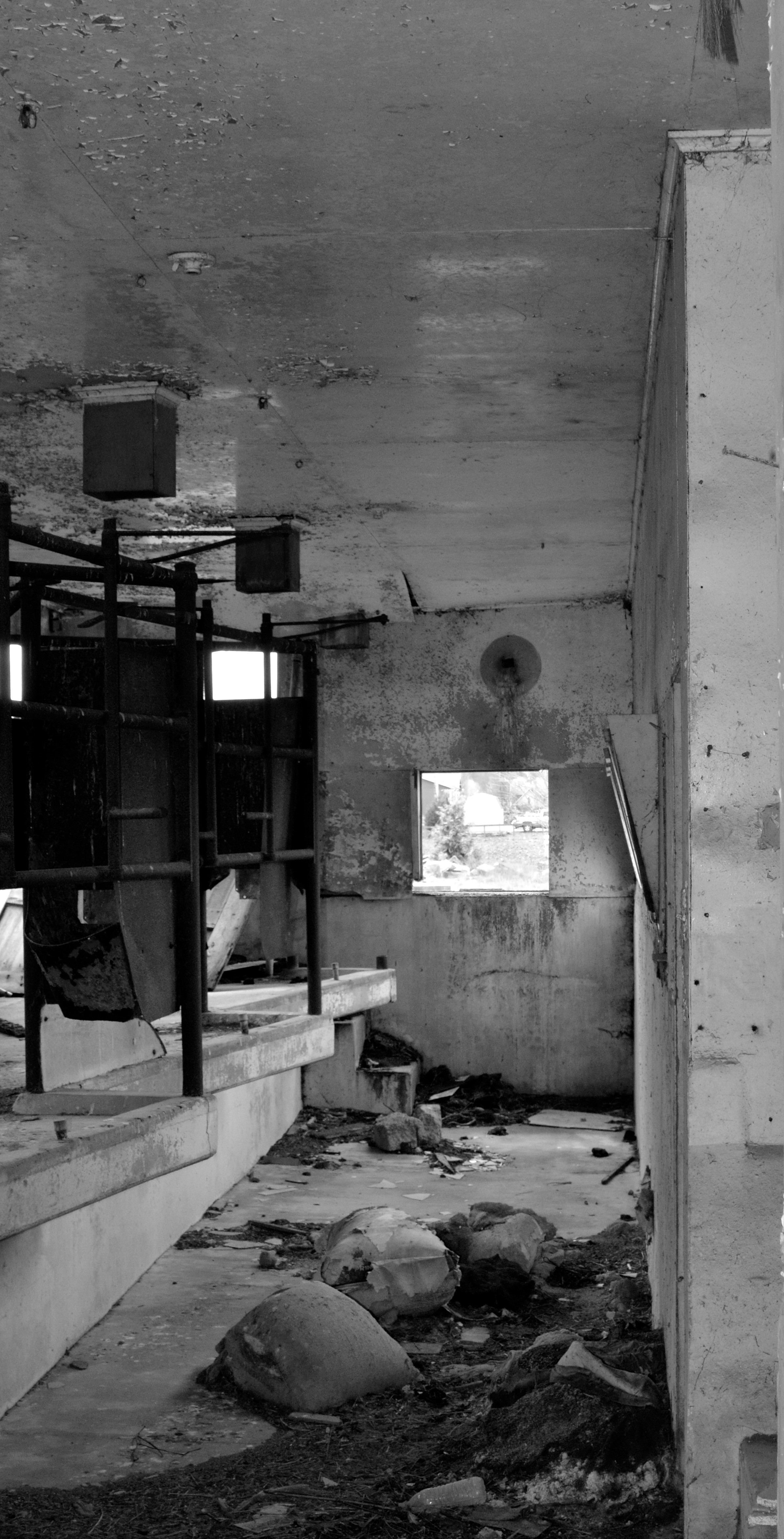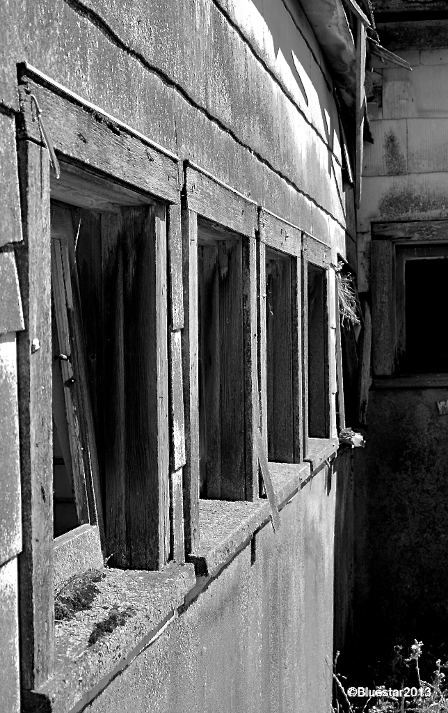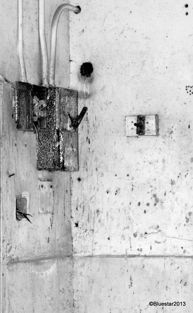 Color versions of previous images. With color you can see the tonal variations in the corrugated roof ( as well as the geometry of lines) and the shades of rust to the right of the doorway above. I like seeing the partial windows in the background; adds some sort of depth, but leads nowhere. Well, just some random thoughts. I rarely comment on the images I post. I would rather the images spoke for themselves, but today I felt like sharing my impressions:-).
