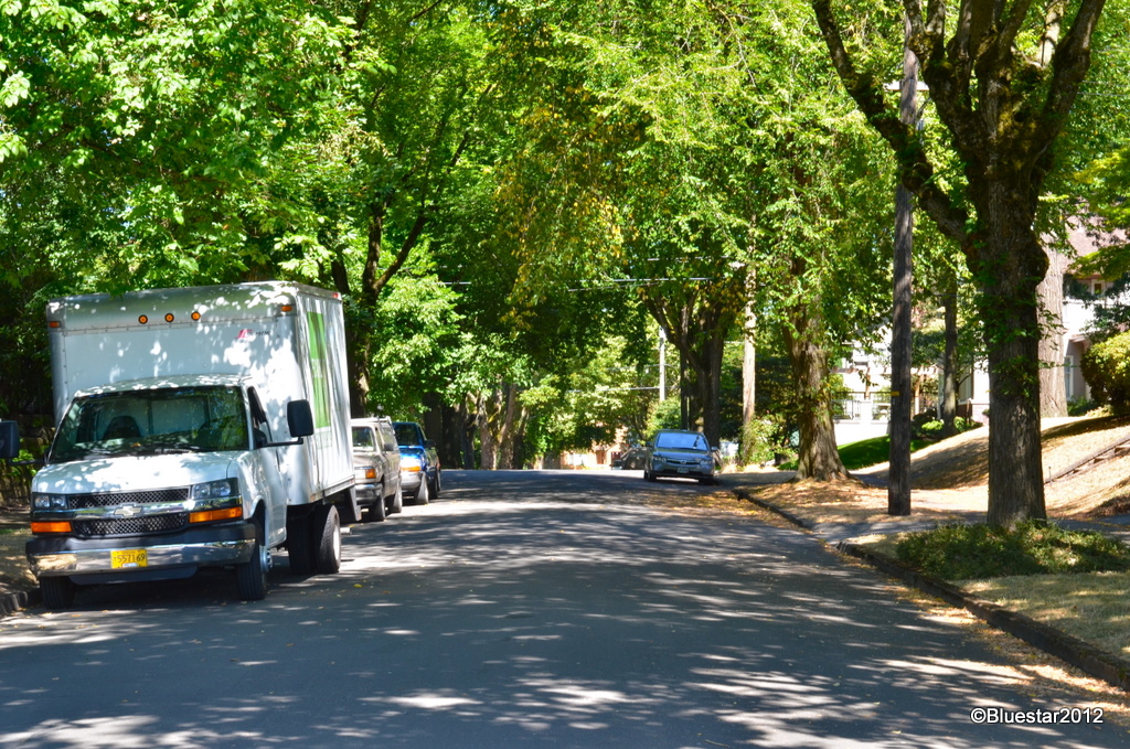 In the Pacific Northwest we rely on artificial devices to remind us of what the sun may look like. This tree has such a lumpy trunk from pruning it looks like it has gone through a series of plastic surgeries.
